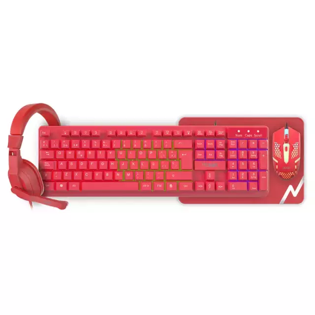 El NKB-413B es un Gaming Combo de Alto Diseño que te garantiza la mejor performance para tus juegos en PC.Contiene Teclado y Mouse Retroiluminados, Mouse Pad que brinda un óptimo deslizamiento y Auriculares con Micrófono confortablemente acolchados.Con el Gaming Combo NKB-413B tendrás todo lo que necesitas para dominar el juego y disfrutar al máximo.Disponible en color Blanco.Teclado Gamer:- 104 Teclas en Español- 12 Teclas Multimedia- Retroiluminado efecto arco iris- Cable de 1,4 metros- Conexión USB- Medidas: 436 x 131 x 2,5 mmMouse Gamer:- 4 Botones y Scroll- Selector de 800/1200/1600 DPI- Retroiluminado efecto arco iris- Conexión USBAuriculares Gamer:- Diametro de Speaker: 40 mm- Micrófono con giro de 135º- Acolchados con vincha ajustable- Cable de 1,8 metros- 2 Conectores miniplug 3.5 mm para Audio & Mic.Mouse Pad:- Paño de Microfibra de Goma antideslizante- Material confortable y suave- Garantiza un mejor deslizamiento del Mouse- Apto para cualquier superficie- Medidas: 220 x 180 x 1,2 mm