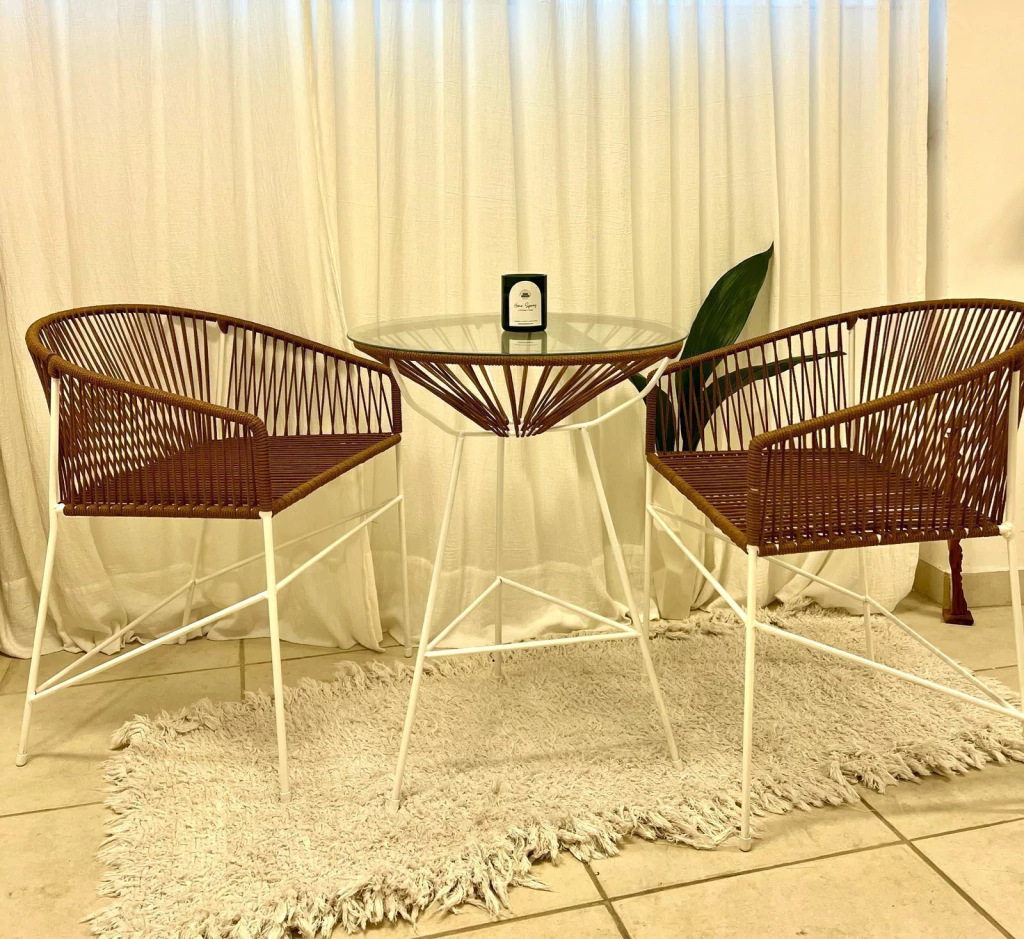 DESCRIPCIÓN:Estructura de hierro macizo.Pintura electrostática EPOXI.Terminación de regatones plásticos para no dañar los pisos.Modelo Asunción y Veracruz: Estructura de caño.Productos artesanales elaborados 100% a mano, pueden contener detalles dado al corte, doblado y tejido manual.Cada diseño es único y elaborado con mucho amor.RECOMENDACIONES TEJIDO:Balcones, terrazas y jardines:Soga sintética UV. (Apta exterior)Interiores o exteriores cubiertos con poca exposición solar:Soga sintética (NO apta exterior)MEDIDAS Y COLORES:Podrás visualizarlas deslizando las imágenes.DEMORA ESTIMADA:Todos los productos se realizan a pedido, al finalizar la compra podrás visualizar los tiempos estimados.INFO BANQUETAS:La altura al asiento se realiza a pedido desde 60 cm hasta 85 cm. Recomendamos una diferenciaaproximadade 25 cm entre el comienzo del asiento y la altura total de la barra.Ej: Barra de 100 cm - Altura al asiento de la banqueta de 75 cm.INTERIOR DEL PAÍS:Despachos a través de Vía Cargo, únicamente a sucursal o terminal.Mesas de arrime:NOincluyen vidrio al despacharse por transportes de larga distancia.Si tenés dudas, consultanos por WhatsApp o MD de Instagram.Recomendamos revisar el detalle de compra una vez realizada la misma para evitar confusiones.