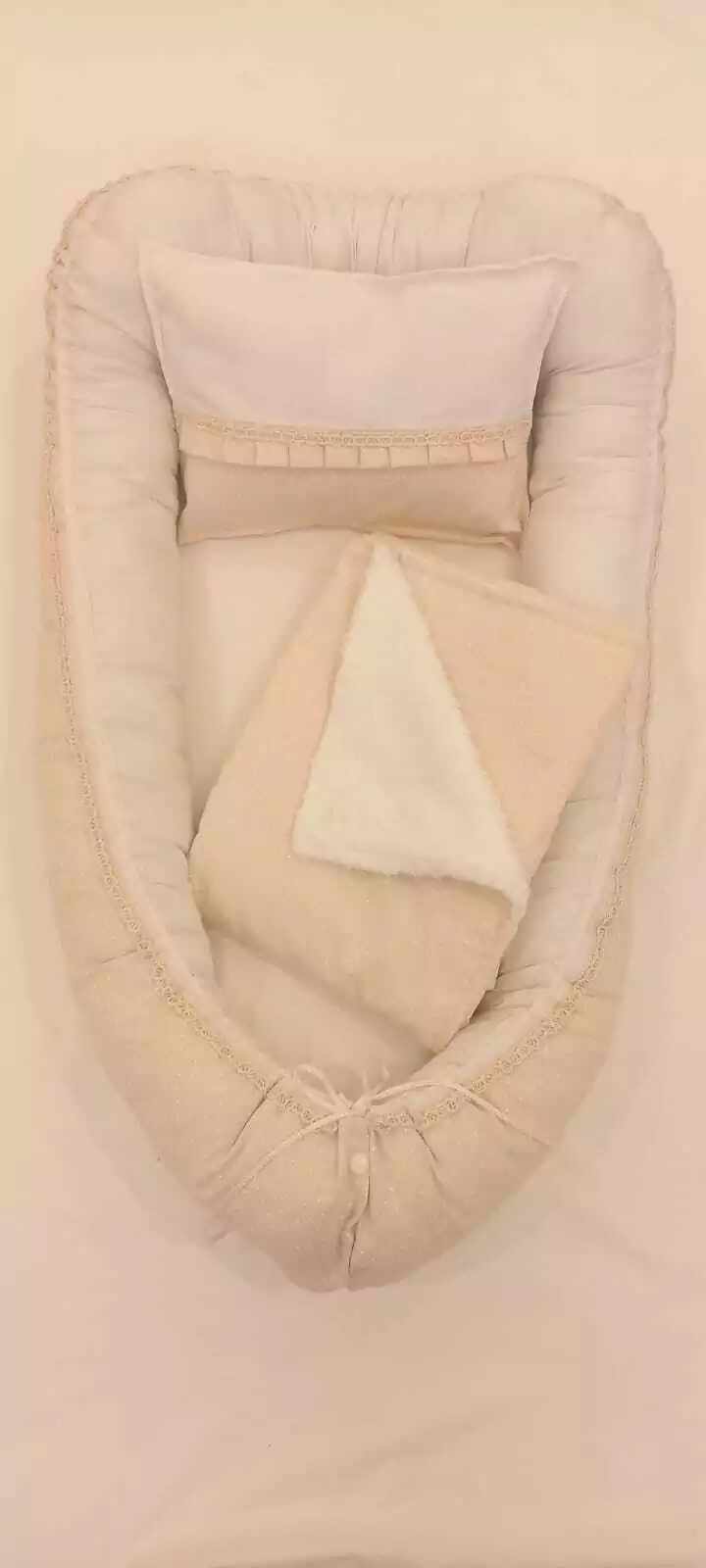 Combo nido de contenciónTe incluye:Nido de contención con base ( centro de goma espuma de 2 cm de alto extraible, relleno de vellón siliconado ultra soft,  reversible, posee tiras de atar y broches a presión en sus extremos)Manta : corderito liviano de un lado y gabardina/piqué o tusor del otro. Ideal para tapar al bebé mientras utiliza el nidito o al salir a la calle.Almohadita decorativa de regalo : rellena de vellón siliconado ultra soft ( mantiene su forma ) funda extraible.Medidas :Nidito : ancho 50 cm, largo cerrado 78 cm, largo abierto 98 cmManta : ancho 74 cm, largo 98 cmAlmohadita: alto 20 cm , largo 30 cm.