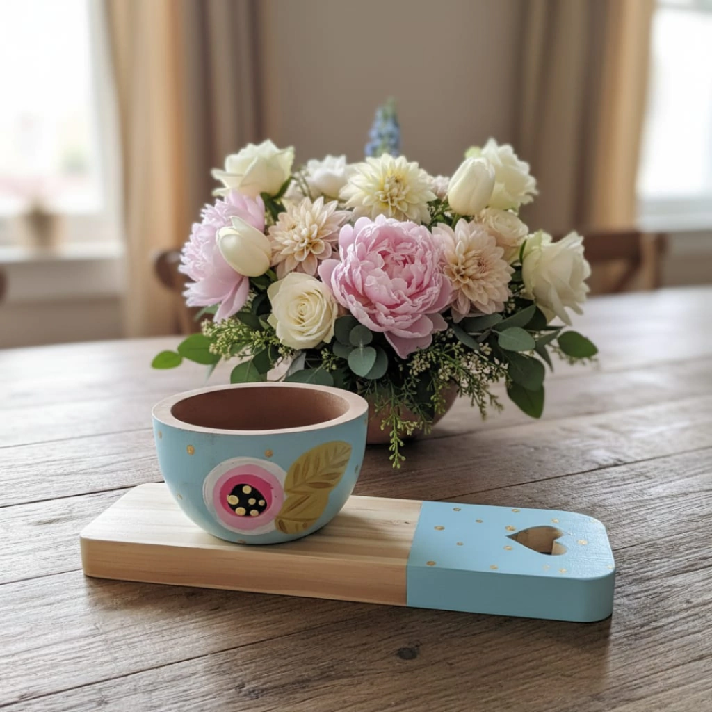 Este Combo de tabla y cuenco de madera es la solución perfecta para darle un toque especial a tus momentos.Súper práctico, lo podés usar para disfrutar del mate, un rico desayuno o bien tenerlo en tu escritorio. ¡Ideal para sorprender a alguien con un regalito! 🌟Presentado en colores vibrantes, este combo no solo es funcional, también es un atractivo decorativo.La tabla mide 30 cm de largo y 10 cm de ancho, mientras que el cuenco tiene un diámetro de 12 cm.¿Y lo mejor?Se pueden usar tanto para servir como para cortar del lado de atrás, se lavan con facilidad y con un poco de aceite de cocina, ¡te duran un montón!Dale ese toque único a tu mesa. 🍽️