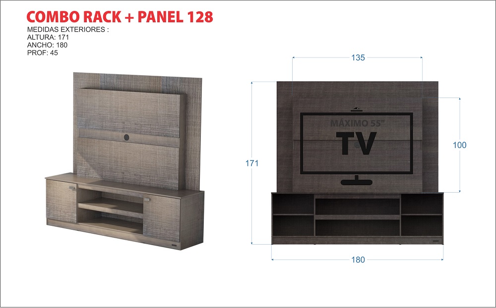 Combo Rack + Panel de TV 128 171 × 180 × 45 cm