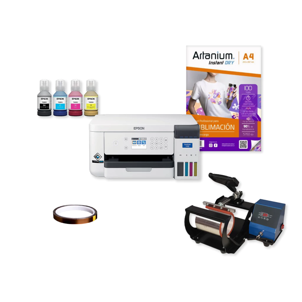 Si estás pensando iniciarte en sublimación, tenemos todo lo que necesitás para dar los primeros pasos.⭐️ COMBO TAZAS BLUE F170 ⭐️- Impresora para Sublimación EPSON SC-F 170 - EPSON - Precision Core- Tintas Epson Sublimación T49M Original CMYK - EPSON - 140ml- Papel para sublimar Instant Dry- Artanium - A4 - 100 hojas- Estampadora de Tazas Rectas 80 SENKO Blue Sublimadora- Cinta térmica 10 mm x 30 mts - 1 unidad-------Más info:⭐️ Impresora para Sublimación EPSON SC-F 170 - EPSON - Precision CoreLa solución completa de sublimación de tinta, tamaño carta, que brinda resultados de grancalidad con respaldo desde el principio.Obtenga una impresión de sublimación de tinta rápida y confiable desde el primer momento con la SureColor F-170. Ideal para personalizar premios, tazas, alfombrillas de ratón y más, esta impresora de sublimación de tinta de alto rendimiento ofrece impresiones de calidad profesional utilizando la potente tecnología PrecisionCore®. Una solución verdaderamente llave en mano, la SureColor F170 llega con tecnología de tinta de sublimación original de Epson, una bandeja de alimentación automática de 150 hojas y software de impresión para Mac y Windows. Además, con su diseño sorprendentemente compacto que ahorra espacio, puede maximizar el espacio del taller.Incluye 1 juego de 4 tintas EPSON CMYK x 140ml c/u**Epson recomienda el uso de tinta genuina para garantizar un rendimiento y una calidad de impresión óptimos.Características:Certificado Oeko-Tex ECOPASSPORT® (NEP 1903)Certificado ENERGY STAR®RoHSProducto reciclable 5Epson America, Inc. es un socio de transporte SmartWay®6------------⭐️ Estampadora Sublimadora de Tazas Rectas 80 SENKO Blue Sublimadora1 año de garantía y servicio técnico prioritarioAlta calidad de construcción y mayor durabilidadControlador de temperatura y tiempo digitalIdeal para profesionales con alto volúmen de trabajo¡Ideal para estampar en distintos materiales como Polímeros, Cerámica, Madera, Metal y muchos más!Características:Modelo: Línea BLUEResistencia: Recta de 80mm de diámetro (11OZ)Controlador digital de tiempo y temperaturaRango de temperatura: 0-225°CRango de tiempo: 0-999 segundosVoltaje: 220VSublima tazas, vasos, jarros, mates, chopps y más artículos similares.Apta para sublimar materiales como cerámica, polímero, madera y demás materiales.Pequeña, liviana y de fácil transporte
