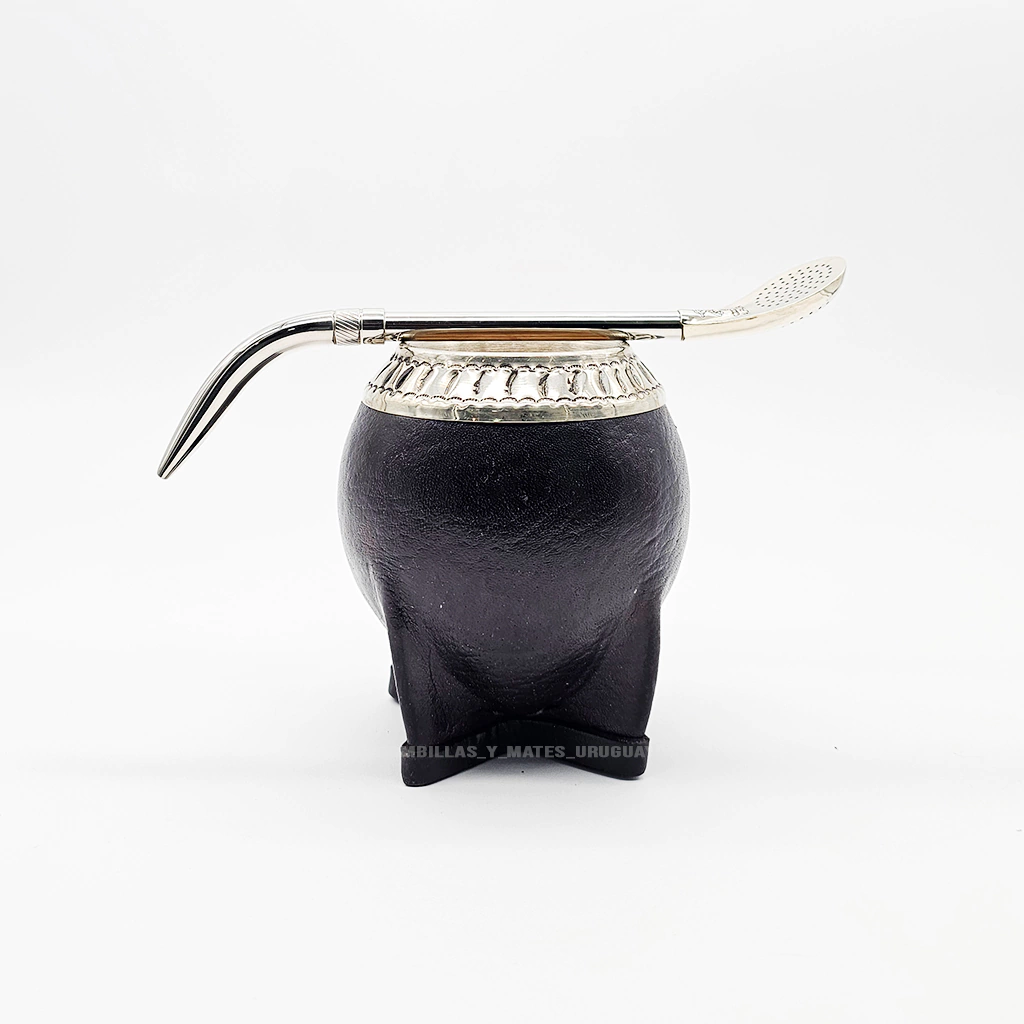 El combo incluye mate torpedo premium con virola en alpaca cincelada y bombilla pico de loro de alpaca maciza.