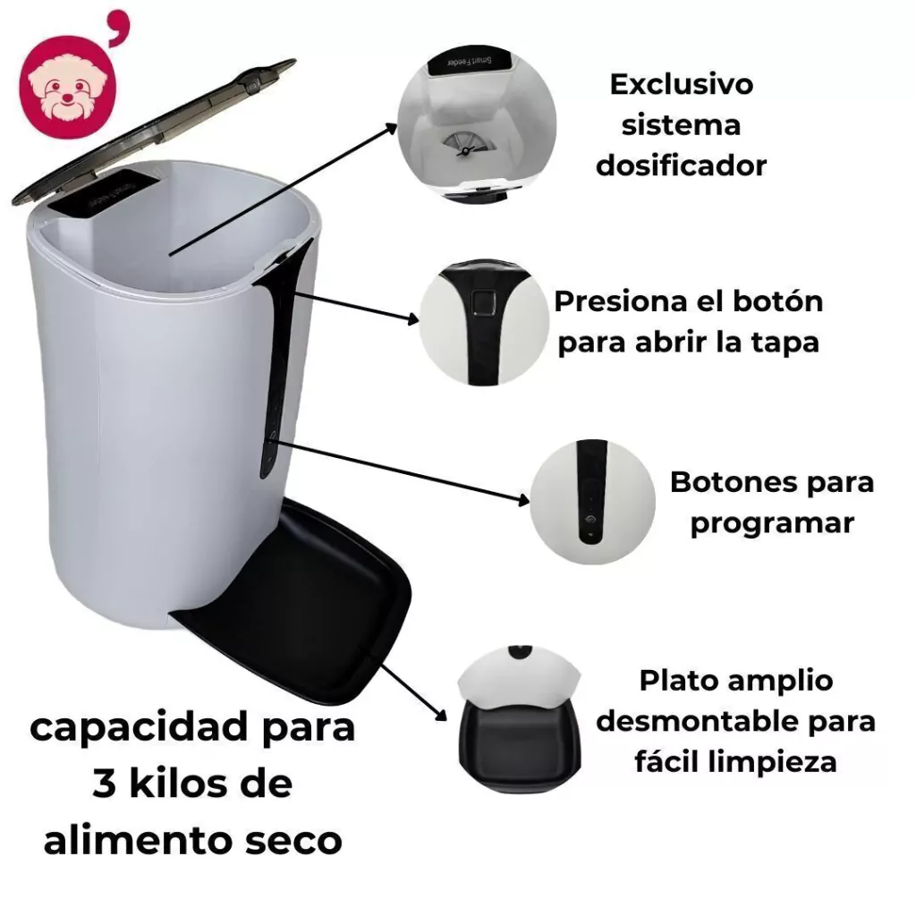 Comprá antes de las 14 y obtené el envío en el día—---------------------------------------------------------------------------------------------------------------------Agregá varios productos a tu carrito para pagar un sólo envío. ¡Si superas el monto mínimo el envío es GRATIS!Comedero alimentador inteligente automático wifi¡Cuidá de tu mascota incluso cuando no estás en casa con este innovador comedero automático inteligente! Diseñado para brindar comodidad y tranquilidad, este dispositivo ofrece tecnología avanzada y facilidad de uso:Características✅Control Remoto:Podes programar las comidas y controlar el comedero desde tu celular, lo que te permite ajustar las porciones y horarios según las necesidades de tu mascota.✅Programación Flexible:permite programar varias comidas al día, lo que es ideal para mantener una rutina regular para tu mascota.✅Gran Capacidad:Con una capacidad de hasta 3 kg, podes asegurarte de que tu mascota tenga suficiente comida durante varios días sin necesidad de rellenar el comedero constantemente.✅Monitoreo y Notificaciones:recibí notificaciones en tiempo real de cuando la comida está baja o cuando tu mascota haya comido y mantenete informado sobre el estado de la alimentación.✅Diseño moderno y resistente:Fabricado en ABS, un material certificado que mantiene la frescura del alimento. Tanto el contenedor interno con dosificador como el plato donde cae la comida son desmontables y lavables. Ademas complementa tu hogar con un estilo elegante.✅Apto para alimento seco: Diseñado específicamente para comida balanceada.RecomendaciónMantenimiento:Limpia el comedero regularmente para evitar la acumulación de bacterias. Asegurate de que la comida esté seca y no se humedezca, ya que esto puede afectar su calidad.Proba y Ajusta:Observa cómo se adapta tu mascota al comedero automático y ajusta las porciones y horarios según sus necesidades y preferencias.—----------------------------------------------------------------------------------------------------------------------Teo’s Friends es un PetShop online importador de productos de primera calidad para mascotas.Contamos con una amplia variedad de productos, accesorios, mochilas, bolsos y juguetes.Nuestro objetivo es dar soluciones para mejorar la vida de tu mascota.Nos gusta poder llevar a nuestras mascotas en todas nuestras aventuras y por eso nos especializamos en soluciones para viajes y paseos.Revisá todos los productos de nuestro catálogo.Consúltanos por cualquiera de nuestros productos y responderemos a la brevedad.—---------------------------------------------------------------------------------------------------------------------Agregá varios productos a tu carrito para pagar un sólo envío. ¡Si superas el monto mínimo el envío es GRATIS!—---------------------------------------------------------------------------------------------------------------------Realizamos envíos a toda la República ArgentinaEnvíos en 24 horas para CABA y GBA con envío flexRealizamos Factura A y B30 días de garantía para devolución---------------------------------------------------------------------------------------------------PODES RETIRAR TU COMPRA DE FORMA GRATUITA EN NUESTRO LOCAL UBICADO EN DEVOTO (Tinogasta 5356, a 5 cuadras del shopping).