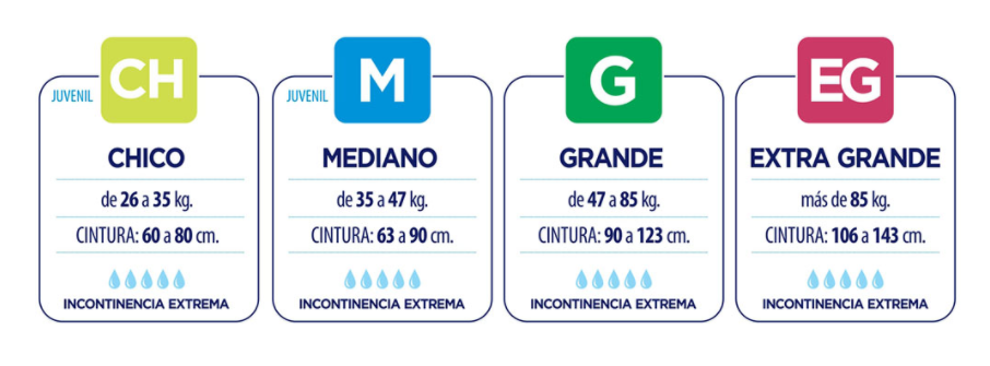 Línea de pañales con diseño anatómico elastizado, juvenil y adultos. Más cómodos, mayor cantidad de gel, doble cinta repegable, ultra delgado. Facilita la movilidad del usuario otorgando mayor independencia. Con vías anti desbordes y cubierta interior de tela hipoalergénica con aloe vera de suave textura.