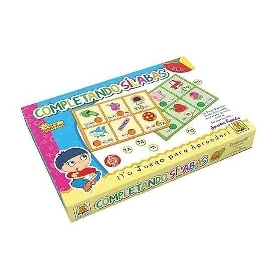 Completando Silabas - Implas• Incluye 4 cartones con distintas ilustraciones.•1 dado (participan de 1 a 4 jugadores).•Incluye 24 fichas plásticas.•Edad +3 años.