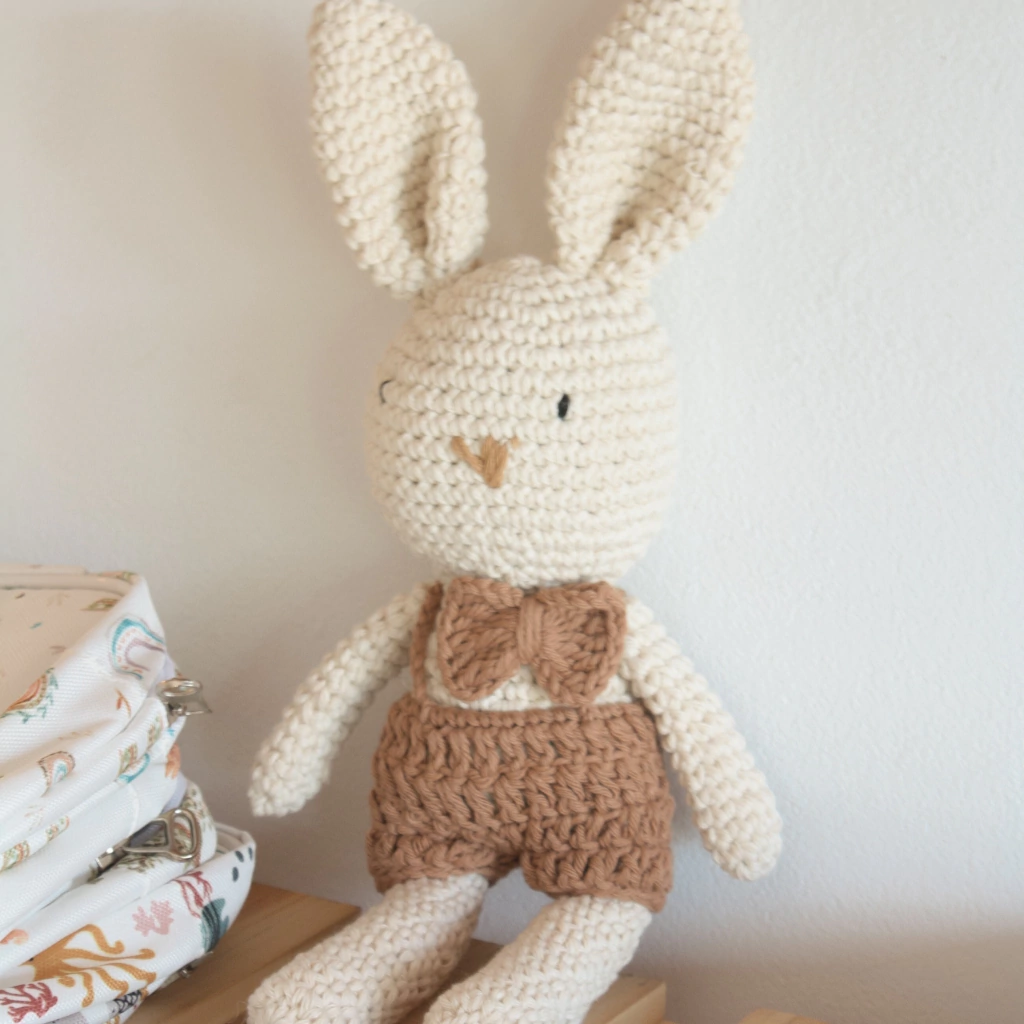 Divertido muñeco tejido al crochet, ideal para utilizar como primer muñeco de apego, para regalar o decorar el cuarto del bebé. Tan suave y mullidito que dan ganas de abrazarlo todo el dia.                                                                                      Ideal para sumar a un regalito.Características:Confeccionado 100% a mano con hilo de algodón.Relleno de vellón siliconado premium hipoalergénico.Cuidados:Lavado a mano con jabón neutro y agua fría.Secado a la sombra de forma natural.No planchar.Medidas:Alto: 34 cm x Ancho: 16 cm.