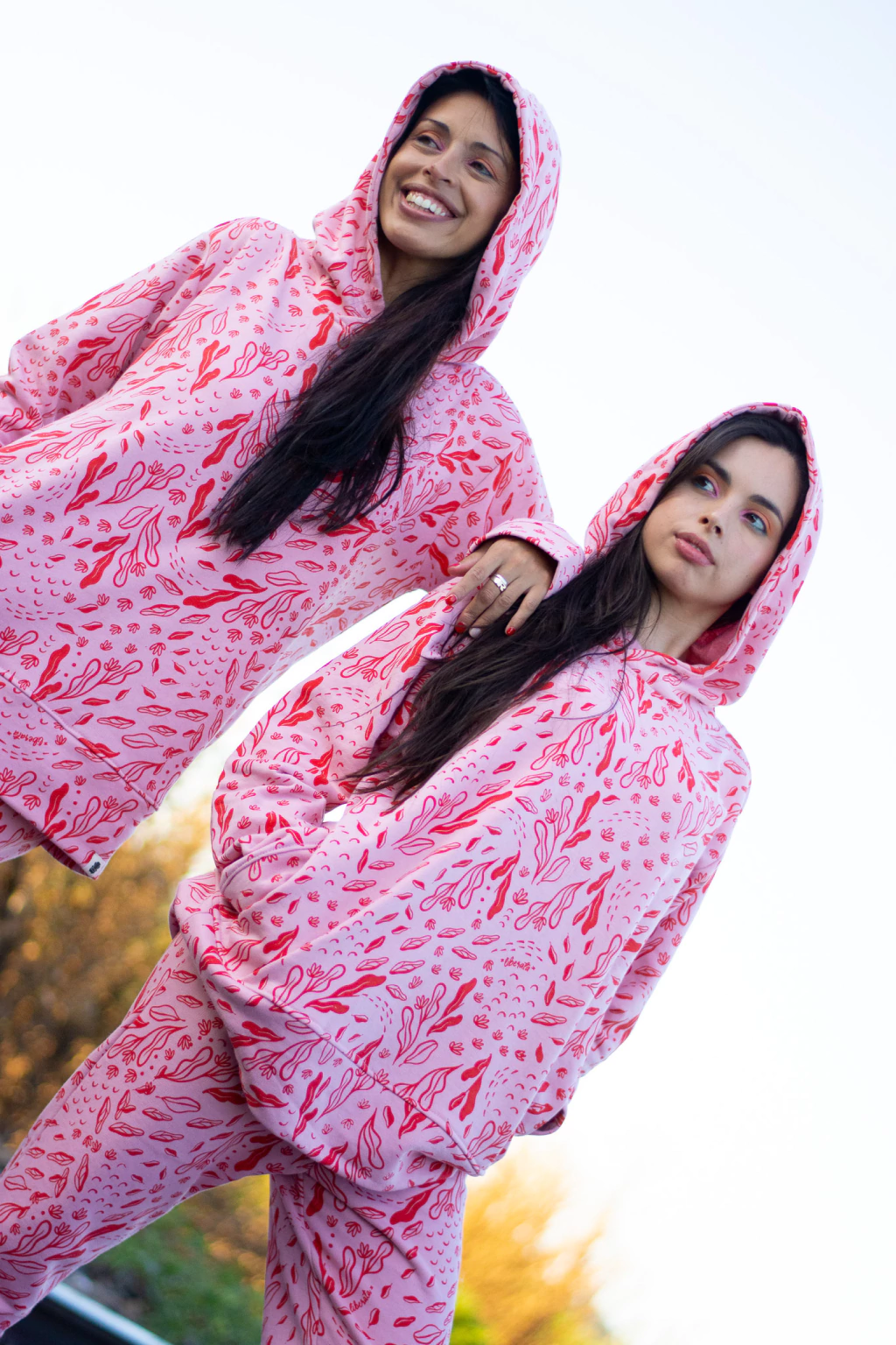 Conjunto Buzo y Pantalón:  modelo Baskerville.Color : Bridal Rosa.Tema : Flower Power.Composición : Rústico liviano 100% algodón.Confeccionado y estampado en serigrafía en nuestro taller a UN color.Talles disponibles: solo M. ( ver imágenes adjuntas )