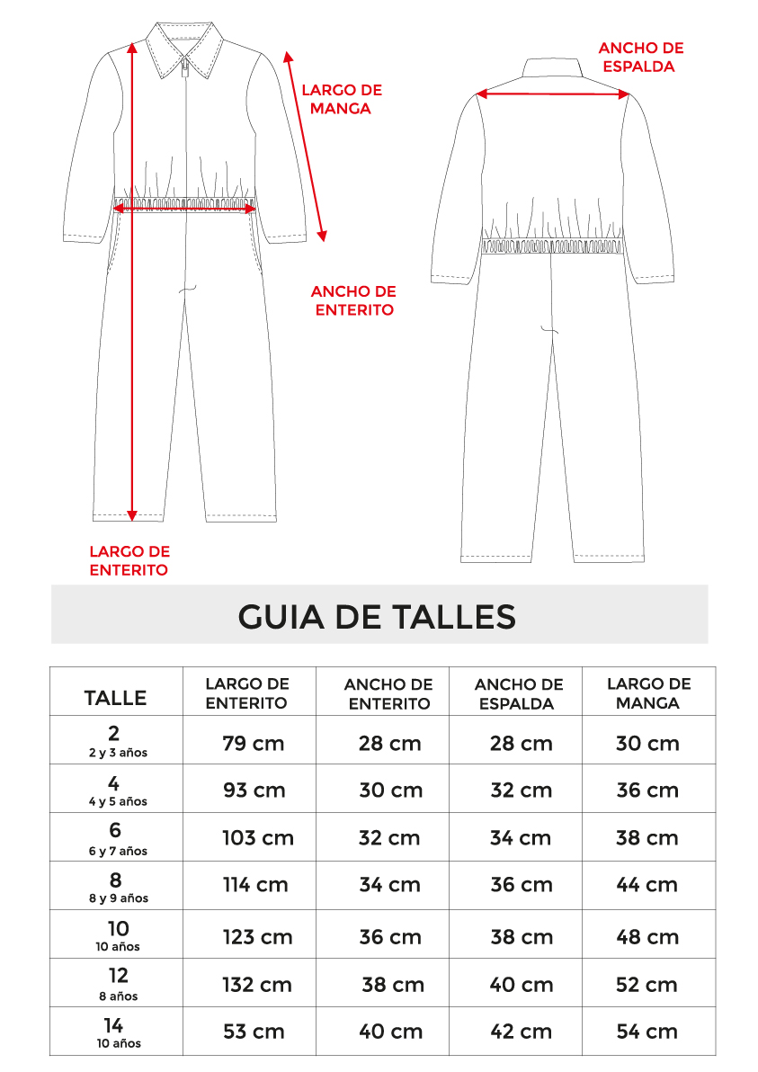 👉 No compres talles de más "por las dudas", ya que el traje puede quedar demasiado largo y no lucirse correctamente. Consulta por el tiempo de demora si necesitas que el traje se confeccione con medidas diferentes a las publicadas.