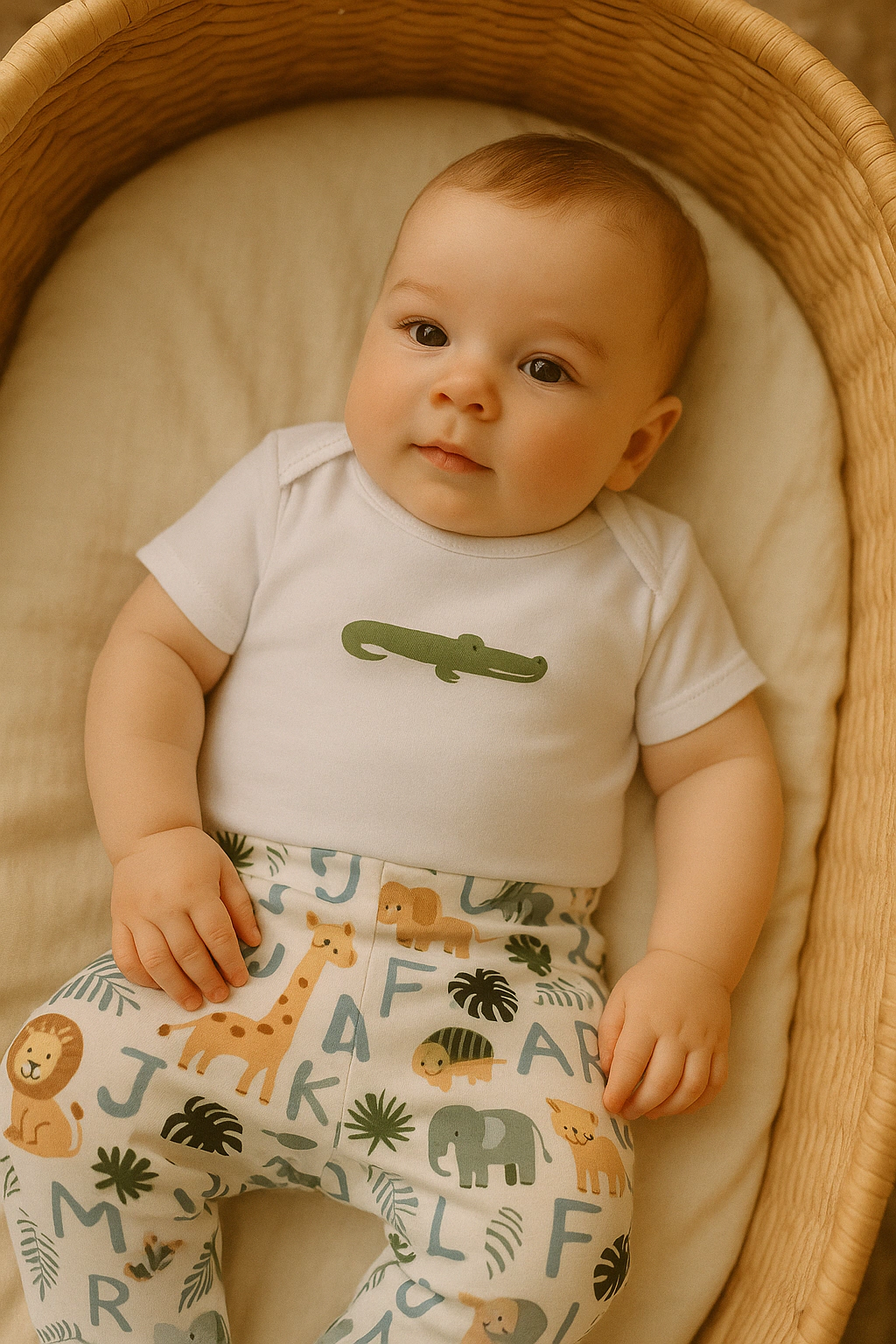Conjunto Coco - Prenda Ideal para BebésDescubre elConjunto Coco, un encantador set de ropa para bebés diseñado especialmente para la comodidad y el estilo. Confeccionado en100% algodón, este conjunto incluye un body demanga cortay un pantalón estampado con un divertidodetalle de cocodrilo.Ideal para bebés de3 a 6 meses, es perfecto para los días cálidos. Dale a tu pequeño la suavidad que merece con este conjunto único que combina moda y confort.