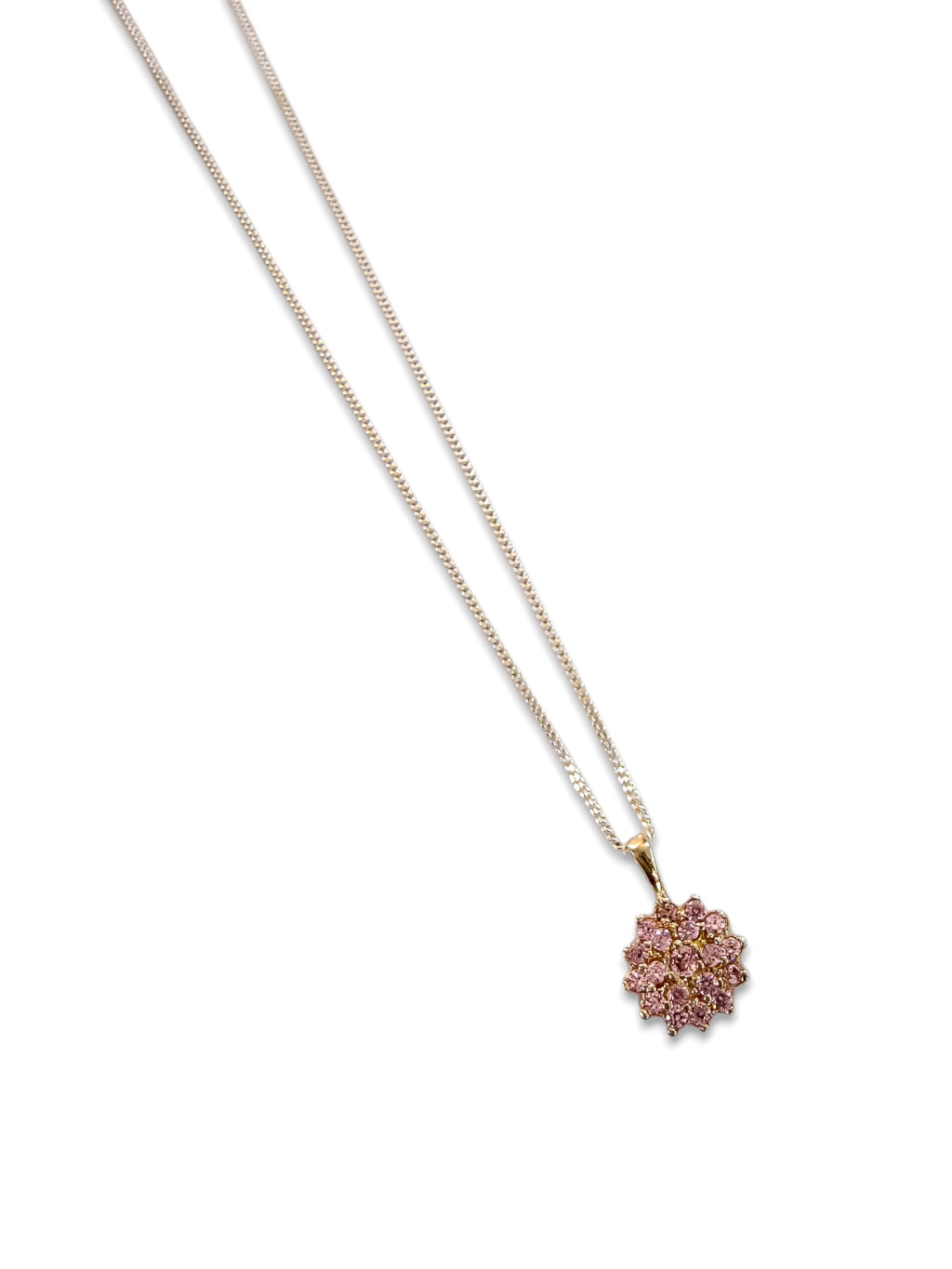 En la imagen: conjunto de cadena de plata 925 y dije con forma de copo de nieve rosado. La cadena es modelo Groumeth y tiene un largo de 45 cm de largo.