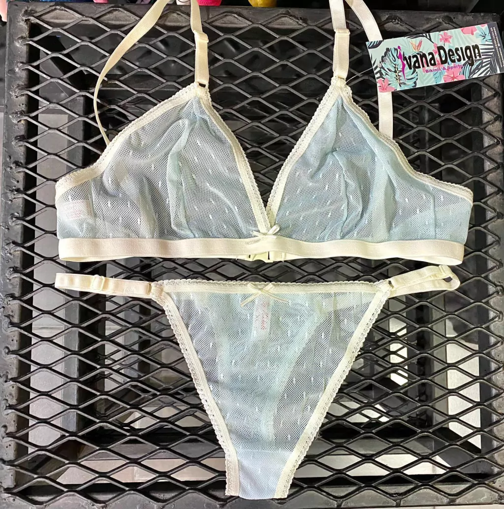 "CONJUNTO DE CORPIÑO TRIANGULITO CON TANGA LESS CON BRETELES REGULABLES, REALIZADO EN MICROTUL, ELASTIZADO EN SU INTERIOR, TELAS IMPORTADASCUIDADOS:Lavar a ManoNO Lavar en MaquinaNo usar blanqueadoresSecado DelicadoNo Planchar"