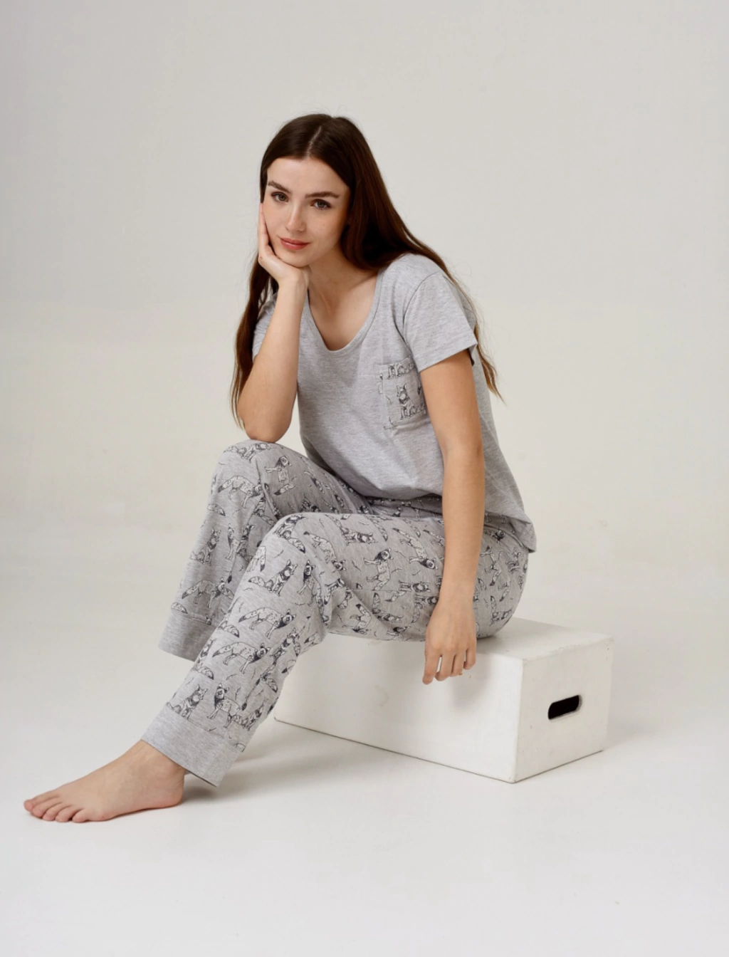 El modelo del pijama es al cuerpo. La tela cede hasta adaptarse y amoldarse a las medidas del cuerpo.