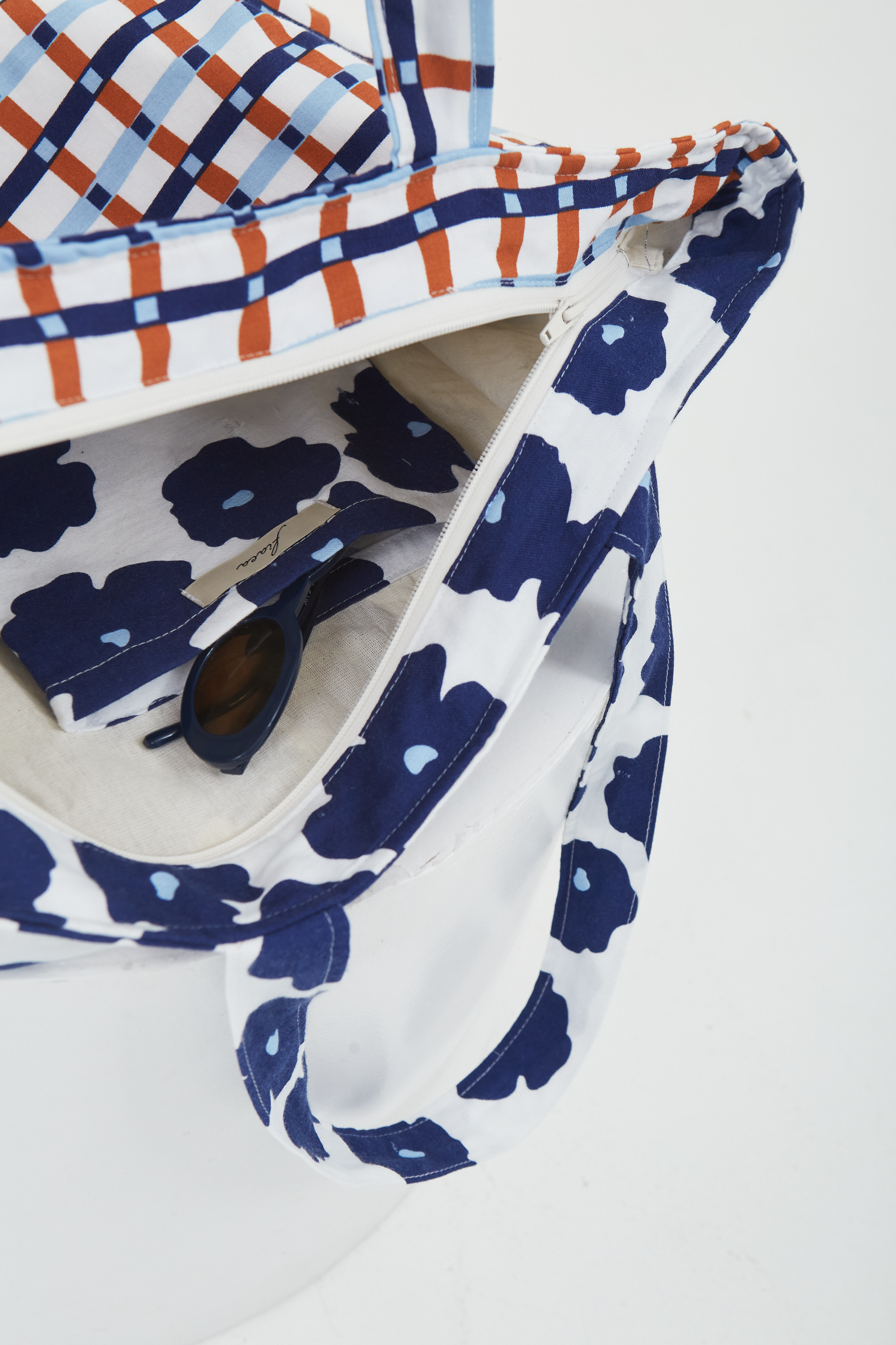 BOLSO OSLO FLORES AZUL Y CUADROS