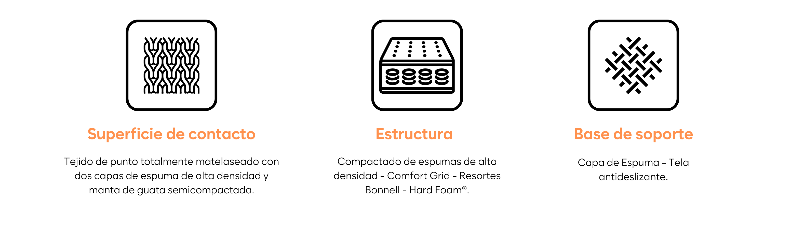 Este colchón ha sido diseñado para ofrecer una estabilidad sobresaliente y un soporte óptimo, factores fundamentales para lograr un descanso de calidad. Gracias a su estructura avanzada y materiales de alta resistencia, cada parte del colchón contribuye a una alineación adecuada del cuerpo, brindando una sensación de firmeza y confort equilibrados que se adapta a diferentes posiciones al dormir.