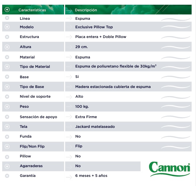 CONJUNTO DE SOMMIER EXCLUSIVE CON PILLOW CANNON ALTA DENSIDAD