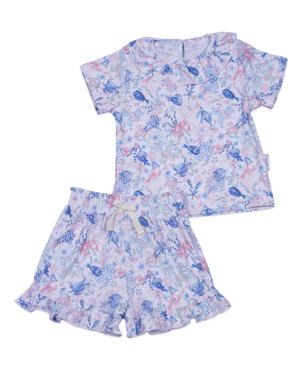 Conjunto de remera y short en morley estampado.Las medidas de la tabla están basadas en medidas corporales y no en las medidas de las prendas.Tabla de talles