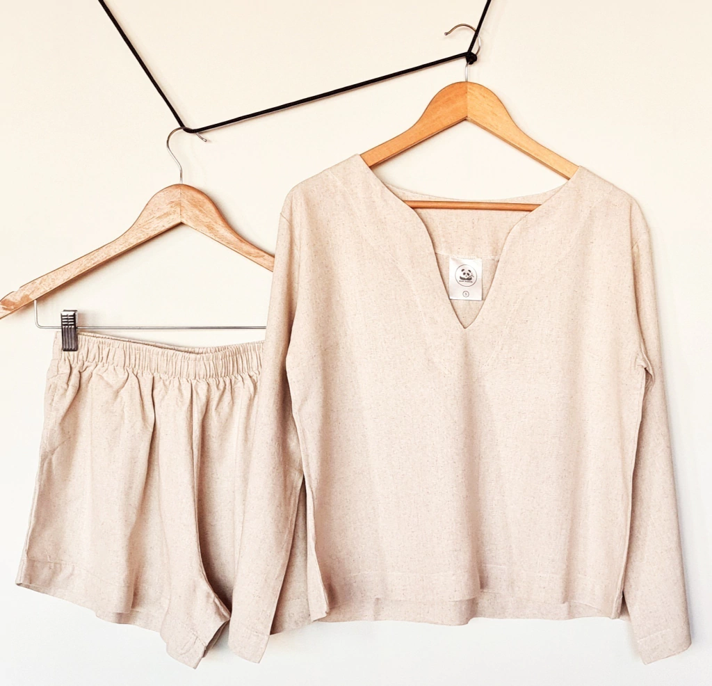 Hecho con un 60% de lino y un 40% de rayón, nuestro conjunto Serenidad Lino combina la frescura natural del lino con la suavidad del rayón. Una mezcla perfecta para mantenerte fresca y con estilo en cualquier ocasión.