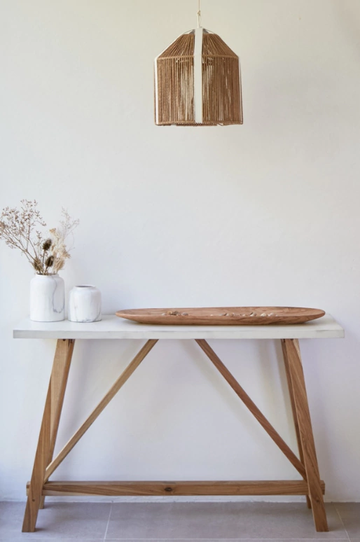 Consola con estrutura en petiribi macizo y tapa en microcemento alisado