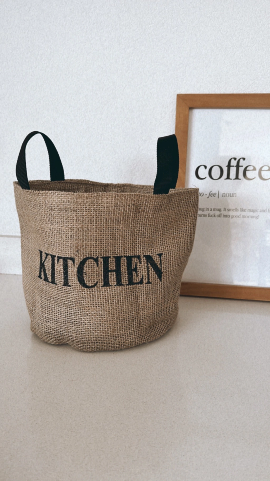 Contenedor confeccionado en arpillera, forrado en arpillera.Medidas: 20x20 cm.