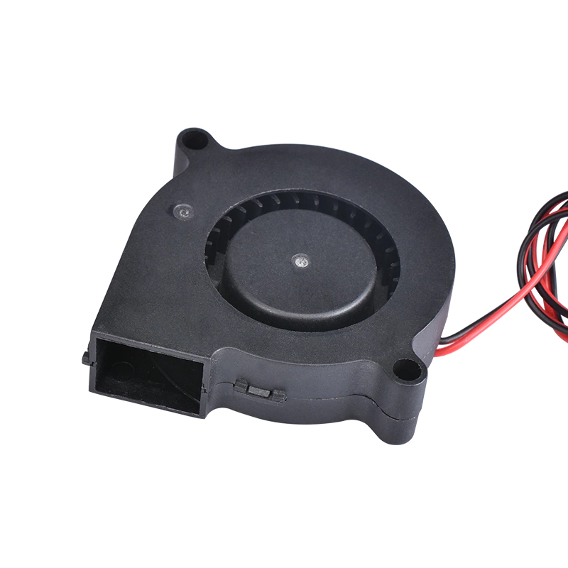 Ventilador tipo turbina (Blower) de 24V apto para impresoras 3D, comúnmente utilizado como fan de capa.Descripción:- Modelo: 5015- Tensión de trabajo: 24V- Dimensiones: 50x50x15mm- Cable: 25cm con ficha de conexión