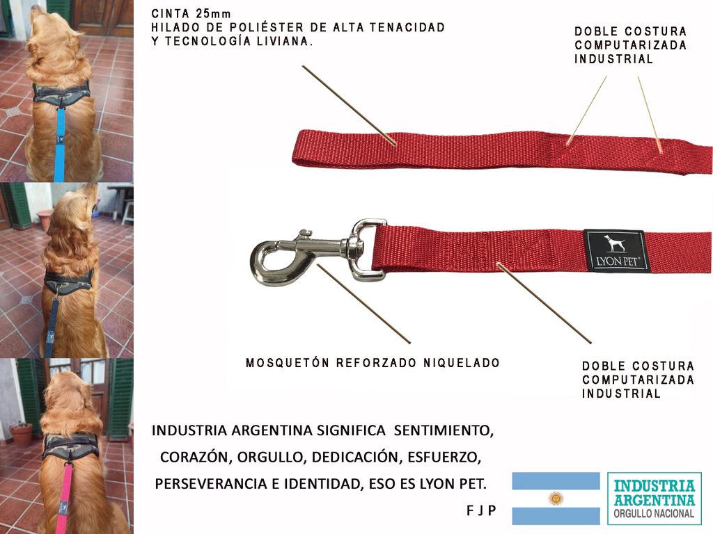 Largo: 5 metrosAncho: 25 mm- MOSQUETON NIQUELADO REFORZADO.- 4 COSTURAS COMPUTARIZADAS INDUSTRIAL.- CORTE Y SELLADO INDUSTRIAL.- CINTA FABRICADA INTEGRAMENTE CON HILADO DEPOLIÉSTER DE ALTA TENACIDAD, TECNOLOGIA LIVIANA.- RESISTENCIA En Kg a la rotura: 1000 KILOS.- HILOS DE POLIÉSTER DE ALTA TENACIDAD.- IDEAL PASEOS URBANOS / DEPORTIVOS -EXTREMOS/ ADIESTRAMIENTO - TÁCTICO / K9.- EXCELENTE CALIDAD, RESISTENCIA, DURABILIDAD.- APTO PARA TODAS LAS RAZAS Y TAMAÑOS DE PERROS.