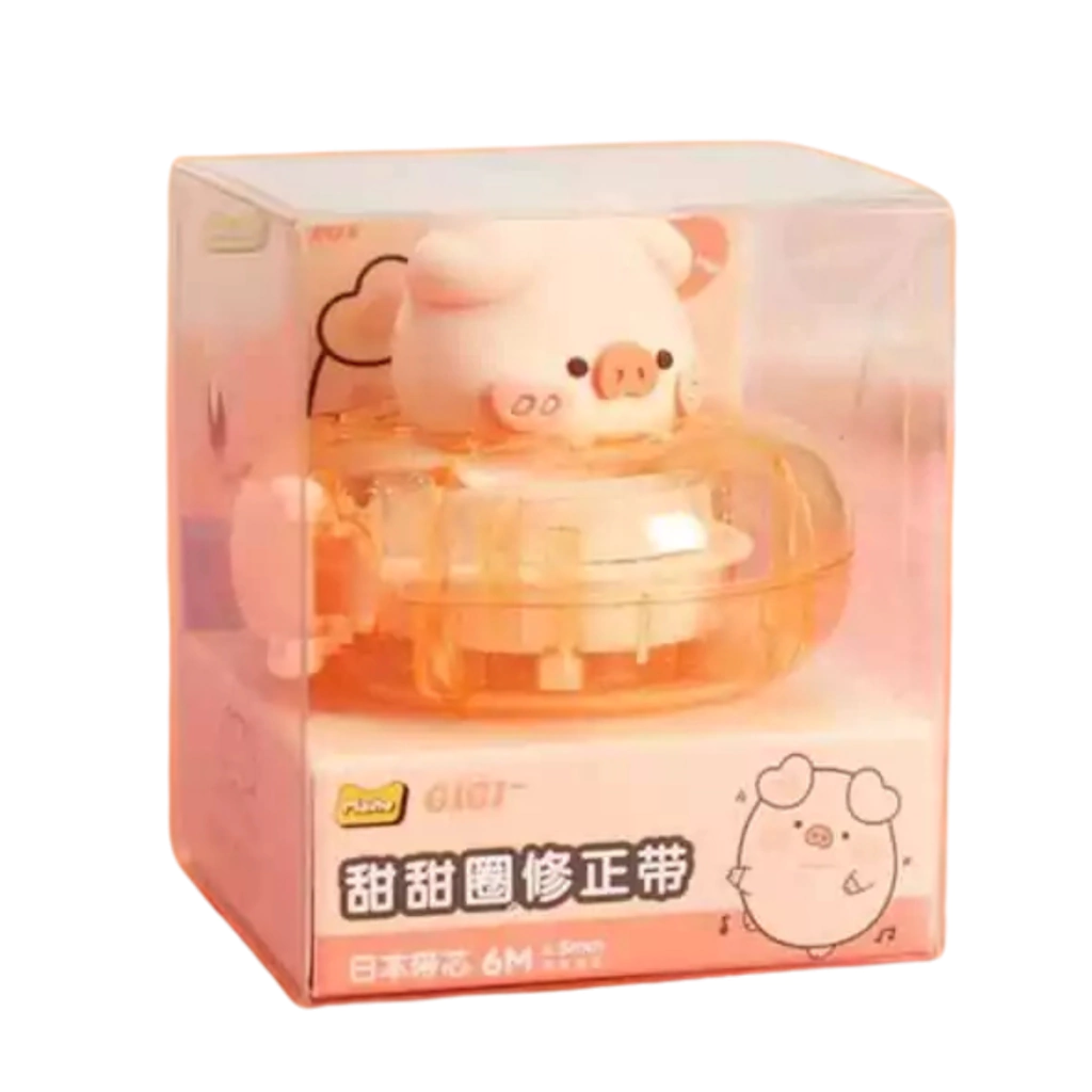 Corrector cinta en forma de cerdito!Su mecanismo de aplicación tipo cinta facilitan su uso, brindando un control total sobre la corrección. A diferencia de los correctores líquidos tradicionales, su formato en cinta garantiza una corrección limpia y sin manchas.