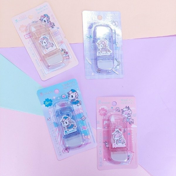 Corector con doble puntade 1 lado tiene una cinta correctora para lapiceradel otro lado tiene una goma para lapiz