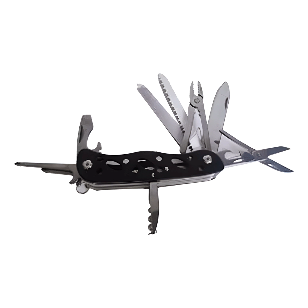 El cuchillo multiusos Uni FM15002 es el compañero perfecto para aventureros y amantes de las actividades al aire libre. Con 11 herramientas integradas, esta navaja de bolsillo es extremadamente versátil y satisface una amplia gama de necesidades, ya sea para acampar, pescar o incluso para las tareas diarias. A pesar de su fuerza y utilidad, la navaja de bolsillo es ligera, pesa solo 0,236 kg y tiene unas dimensiones compactas de 11 x 3,5 cm, lo que facilita su transporte en un bolsillo o mochila.