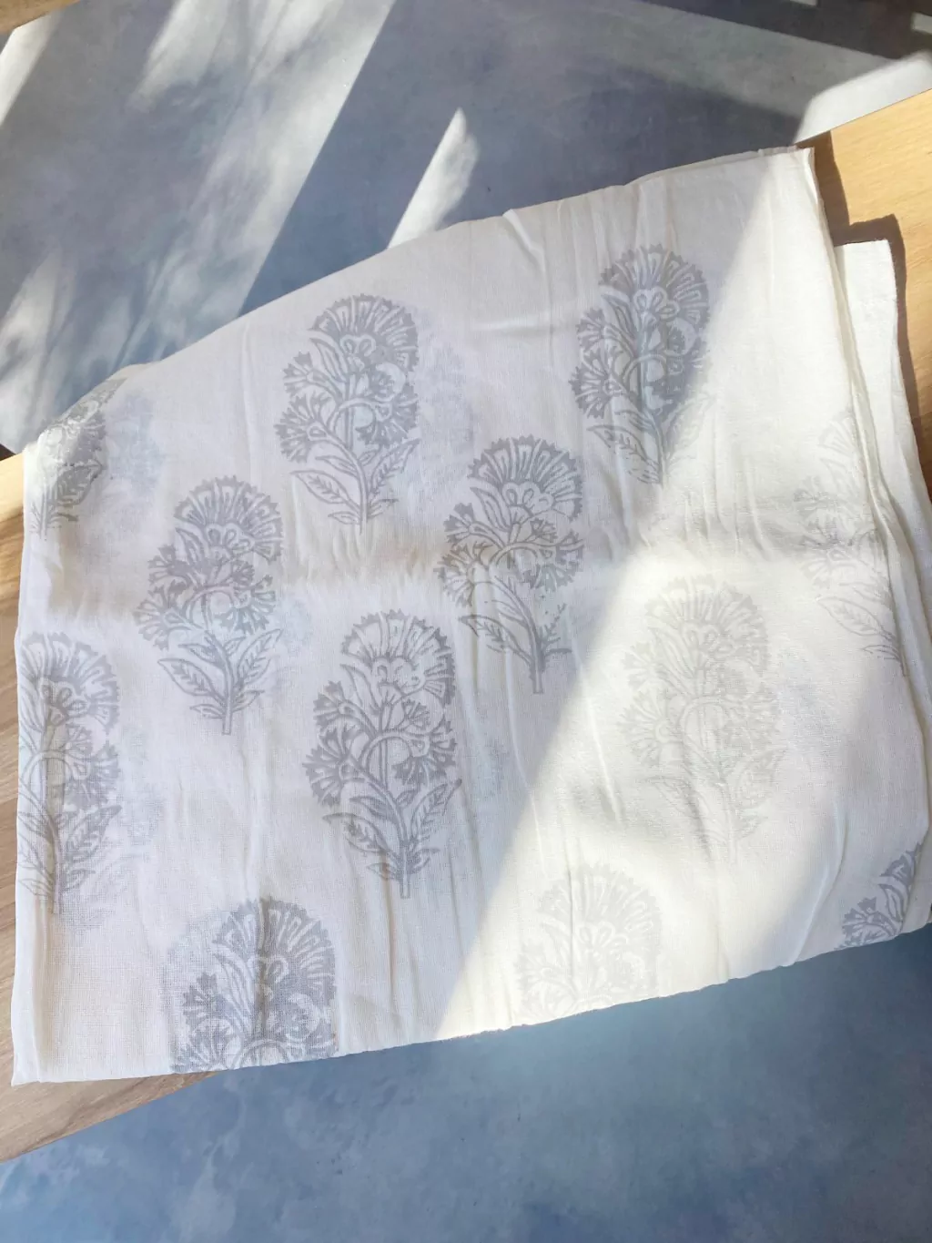 Cortina de gasa de algodón. Achica entre 5 y 8 % despues del primer lavado, solo en el alto.