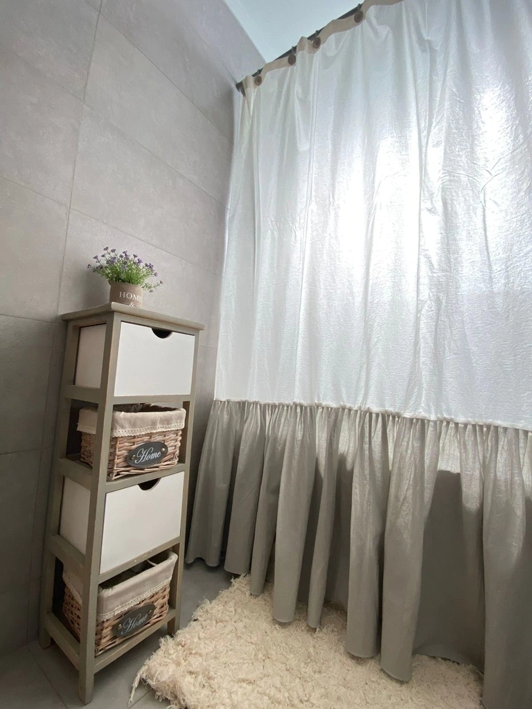 Cortina de baño de lienzo 100% algodon. Se puede elegir con volado simple (solo abajo) o doble (abajo y arriba)Medidas 180x200La podes lavar en lavarropas, recordá no usar productos abrasivos que puedan desteñirlas.Si el producto no está en stock, lo hacemos a pedido y su demora es entre 15/20 díasEnvios: No nos responsabilizamos por los daños o extravíos que puede sufrir el producto en el envío, y cualquier reclamo en el transporte debe realizarse antes de firmar la recepción del mismo.