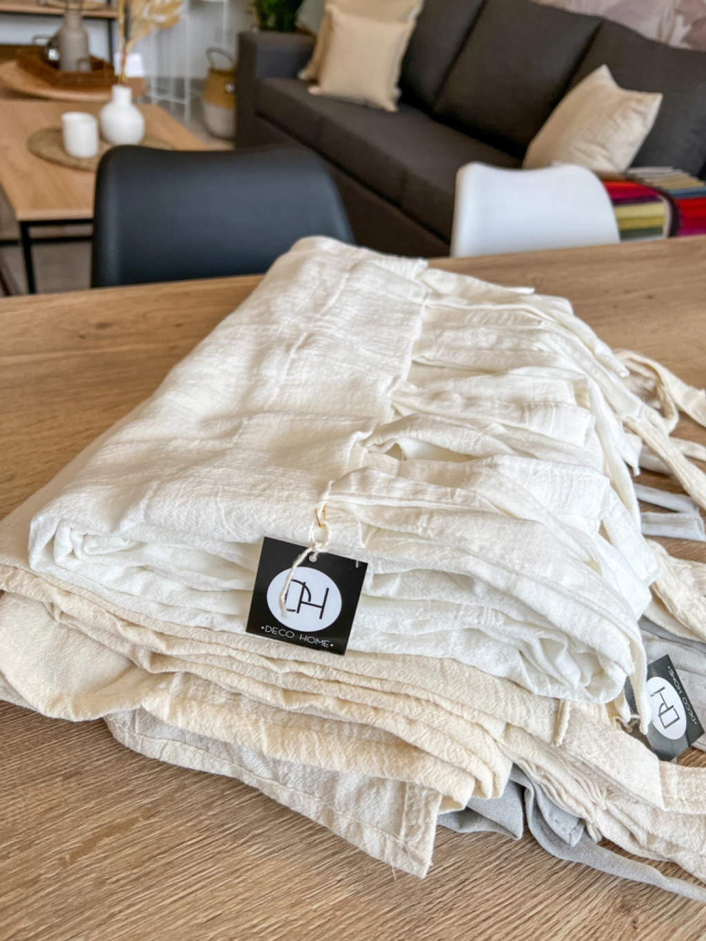 DECOHOME-MATERIAL:Cortina de gasa de tusor- MEDIDAS:▪ 1,90 x 1,90-------------------------------------------------------------------------------------------------------------------------------------------------------------------------------------------------¿CÓMO COMPRO?1- Elegí los productos que quieras de las distintas categorías y añadilos al carrito2- Clickea en "Iniciar Compra".3- Completá tus datos y elegí donde querés recibirlo, o si preferís retirarlo por nuestros locales. Es muy importante que coloques bien tu mail!4- Elegí tu forma de pago y LISTO!.¿CÓMO PUEDO ABONAR MI COMPRA?- Podes pagar tus compras en EFECTIVO presencial en locales, via TRANSFERENCIA BANCARIA y con TARJETAS DE CRÉDITO o DÉBITO. Para ver las promociones vigentes haceclick acá!¿CUANTO CUESTA EL ENVÍO?- Si sos de Mar del Plata, podes retirar gratuitamente por nuestros locales o coordinar envío con costo adicional a través de nuestro flete!- Si sos de otra localidad de Argentina estas son las opciones:Productos de tamaño chico a mediano: al momento del checkout podes elegir entre Correo Argentino u Oca y el costo de envío se genera automaticamente.Muebles, sillas y productos de tamaño grande: En este caso el envío lo definís vos! Debes elegir e indicarnos que transporte utilizar, nosotros lo cotizamos y coordinamos fecha de despacho. Los productos viajan embalados con todas las protecciones necesarias para llegar en perfecto estado. No nos responsabilizamos por roturas y/o daños que puedan ocurrir en el envío.CONTACTANOSSi queres comunicarte con nosotros por cualquier consulta escribinos por whatsapp al 2235900490 o haciendoclick acá!