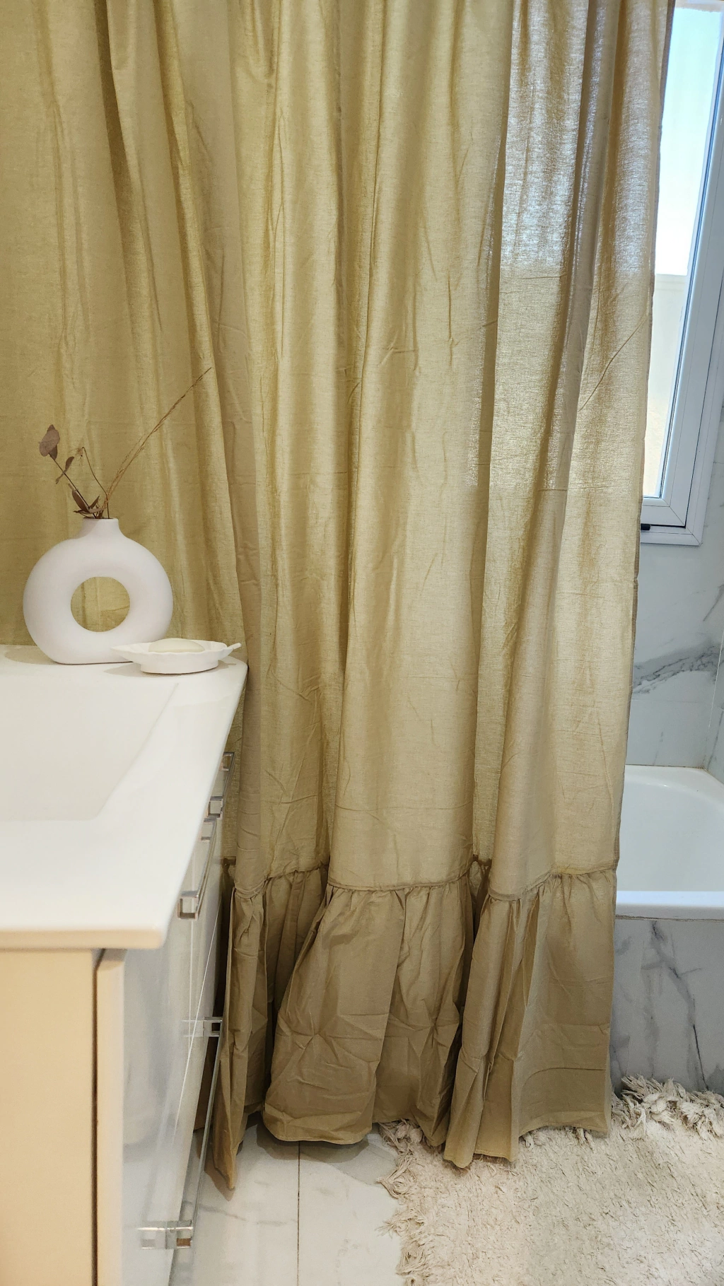 CORTINA DE BAÑO "CON OJALES Y VOLADOS" EN TUSOR COLOR ARENA