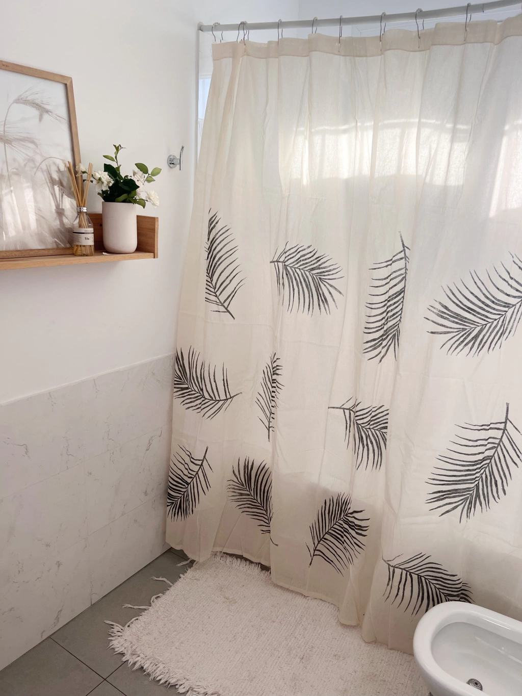 Cortina de gasa de algodón. Achica entre 5 y 8 % despues del primer lavado, solo en el alto.