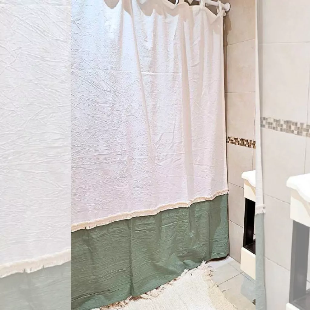 Transformá tu cuarto de baño con nuestra cortina Frida confeccionada en tusor off white y verde seco.Con un detalle de flecos 100% algodón, esta cortina no solo es un elemento decorativo, sino también una pieza funcional que aporta calidez y estilo a cualquier ambiente.Sus medidas son 180 cm de largo por 160 cm de ancho, y viene con tiritas para atar, facilitando su colocación.Ideal para cualquier rincón de tu hogar, su entrega se realiza en un plazo de 15 días hábiles desde la compra. Dale un toque único a tubaño con esta cortina que combina elegancia y comodidad.¡No te la pierdas!