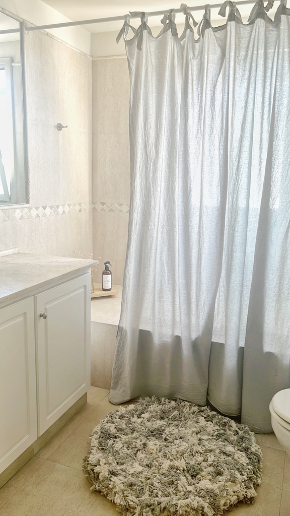 • Versatilidad: Perfecta para el baño, ya que cuenta con un lazo interno cosido por debajo para que el protector plástico no se vea. También es ideal para decorar tus ambientes soñados.