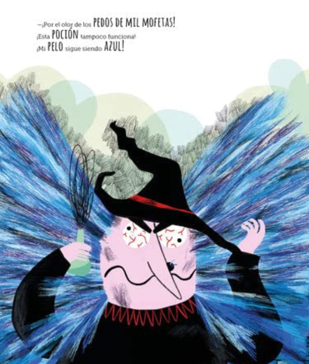 "¡Oh, por el amor a los pedos de zorrillo apestosos! ¡Mi cabello todavía está azul!"Esta bruja está muy enojada. Quiere que su color de pelo sea verde moco, rojo sangre o incluso fangoso como un pantano. ¡Pero no azul, como el hada azul! Quiere ser una bruja bruja... ¡Así que decide que va a secuestrar a un niño en el parque!"Mira a este pequeñín, le ha robado esas muñecas a su hermana", piensa mientras acecha a su presa... ¡Pero se llevará una gran sorpresa!Este fantástico libro de Mariasole Brusa y Marta Sevilla es el ganador de la V Edición del concurso Narrando la Igualdad.Esta bruja quiere robar un niño. Volando con su escoba llega al parque y allí encuentra a Nicolás jugando con unas muñecas.