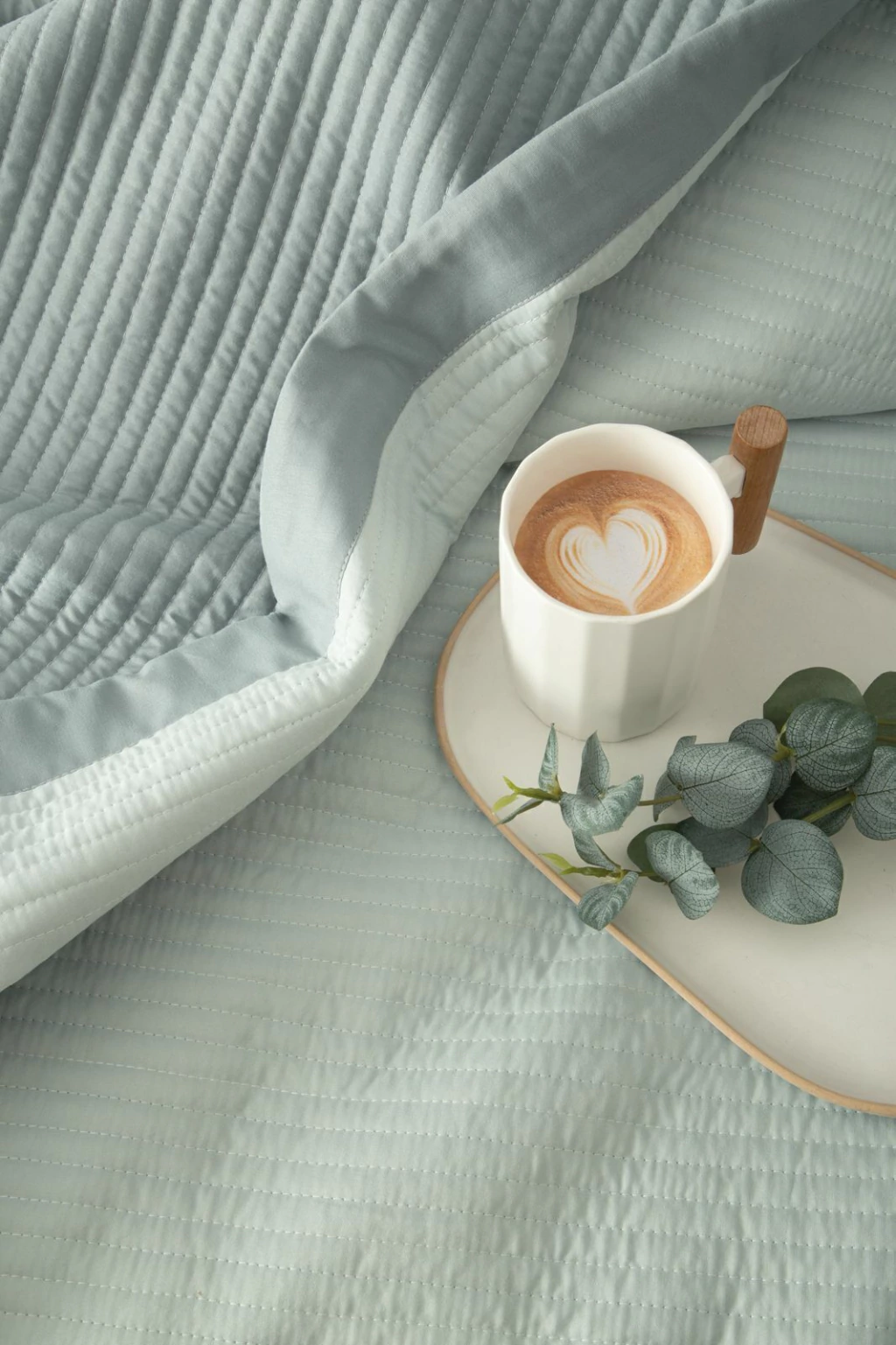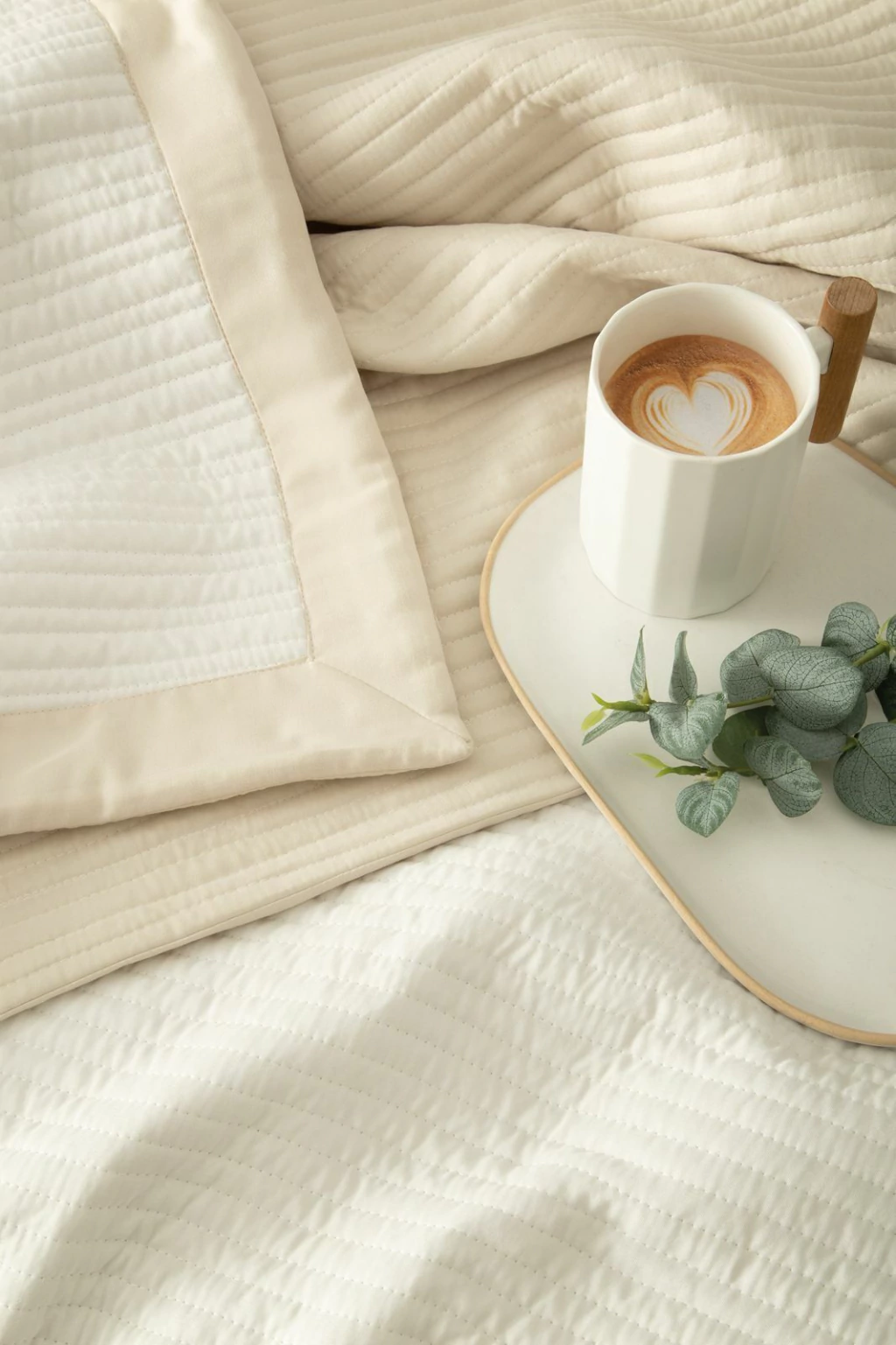 JC . Cover quilt bicolor con un sutil matelaseado rayado y marco a tono. ¡EXCELENTE CALIDAD!