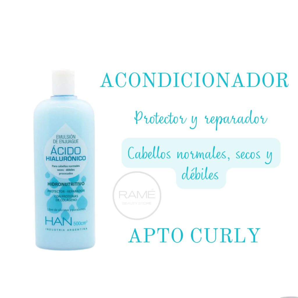LINEA ACIDO HIALURONICOEl ACIDO HIALURONICO, se encuentra de manera natural en nuestro organismo. Ayuda a mantener la piel y el Cabello Hidratado. Capaz de mantener hasta 100 veces su peso molecular en agua. Al unirse con elCOLAGENOque contiene el cabello formanPROTEINASfuente de una importante nutrición.