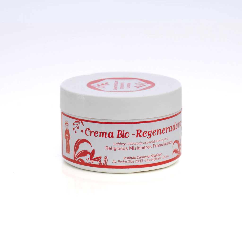 Crema elaborada por los Religiosos Misioneros Franciscanos. Cosmética natural activada con productos apícolas.Dimensiones: 4,5 cm de alto x 7 cm de anchoContenido: 100ccCrema facial bio- regeneradora:activada con rosa mosqueta, zanahoria, propóleo, miel y colágeno. Gracias a su fórmula rejuvenece y da lozanía a la piel. Aplicar en rostro y cuello por la noche.Crema humectante:activada con polen natural de flores, miel de abejas y aloe vera. La devuelve a la piel su humedad natural, evitando el resecamiento de la epidermis, manteniéndola fresca y juvenil. Es indicada para todo tipo de cutis, pudinedo aplicarse varias veces al día. Es una excelente base de maquillaje.Crema tratante de propóleos:especialmente indicada para acné, psoriasis, rosácea, vitiligo, y diversas dolencias de la piel. Activada con propóleo, urea, aloe vera y aceite de zanahoria. Este producto no contiene corticoides ni irritantes. Se aplica sobre la zona afectada con suaves masajes hasta su absorición, dos o tres veces por día.Crema de limpieza: activada con propóleo y cera de abejas. Elimina totalmente las impuerezas de la superficie cutánea humectando y protegiendo la piel. La piel se verá limpia y tersa, posibilitando su humectación y nutrición. Se adapta a todo tipo de cutis.Crema de manos:activada con polen natural de flores, rosa mosqueta y aloe vera. Ideal para recuperar la piel de las manos de la abrasión y deshidratación diaria producto del uso frecuente del alcohol en gel y desinfectantes varios. Protege la piel expuesta, otorgándole elasticidad y tersura. Se recomienda para suavizar los brazos y asperezas de los codos.