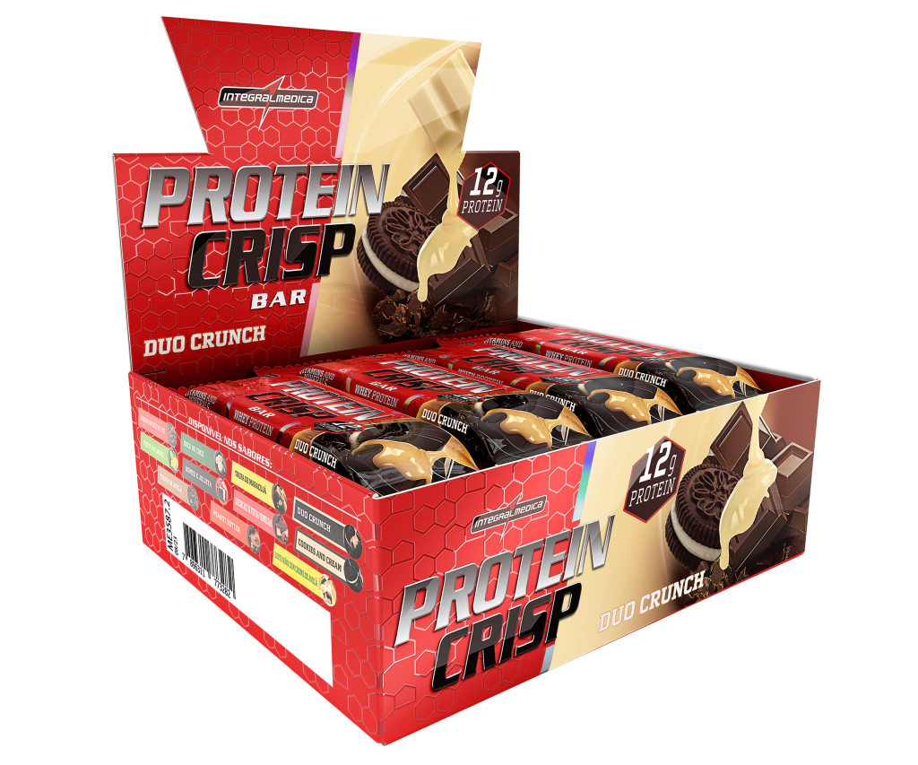 ¿Te apetecía comer dulces sin salirte de tu dieta? Protein Crisp Integralmédica es la barrita proteica con 13 g de proteína y baja en calorías. . Gran fuente de vitaminas, minerales y fibra, ayuda a saciar el hambre y prevenir el catabolismo. Protein Crisp es una barrita proteica completa, que combina una excelente calidad en la composición de sus ingredientes con un consumo práctico, tiene una excelente digestión y es excelente para quienes buscan una opción de alimento proteico saludable para incluir en dietas con diferentes objetivos, tales como: ganar masa. magro, pérdida de grasa y reemplazo de proteínas, por ejemplo. Puede utilizarse fácilmente como sustituto de alimentos dulces, al tener una textura suave y crujiente. Protein Crisp está formulado con Whey Protein y puede consumirse antes y después del entrenamiento, entre horas (snacks intermedios) y como sustituto de postres.