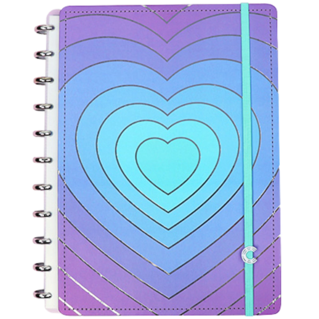 Presentamos Golden Love y Silver Love, dos modelos de cuadernos que te envolverán en amor y ternura. Silver Love te cautivará con sus encantadores colores del degrade del Violeta al Celeste y corazones 💜 grabados en tonos plateados, realizados con la técnica de Hot Stamping, que lo convierten en una opción elegante y sofisticada.
