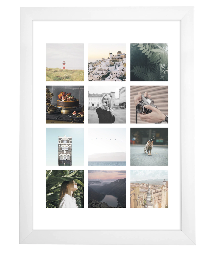 Cuadro decorativo que incluye print de 20x30 cm en ilustración 300gr con 12 fotos personalizables 5x5 cm cada una aroximadamente.