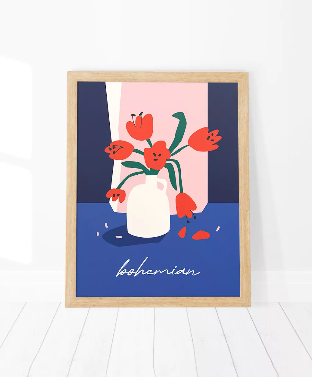 Cuadro decorativo con lámina en papel de alto gramaje, marco y vidrio.