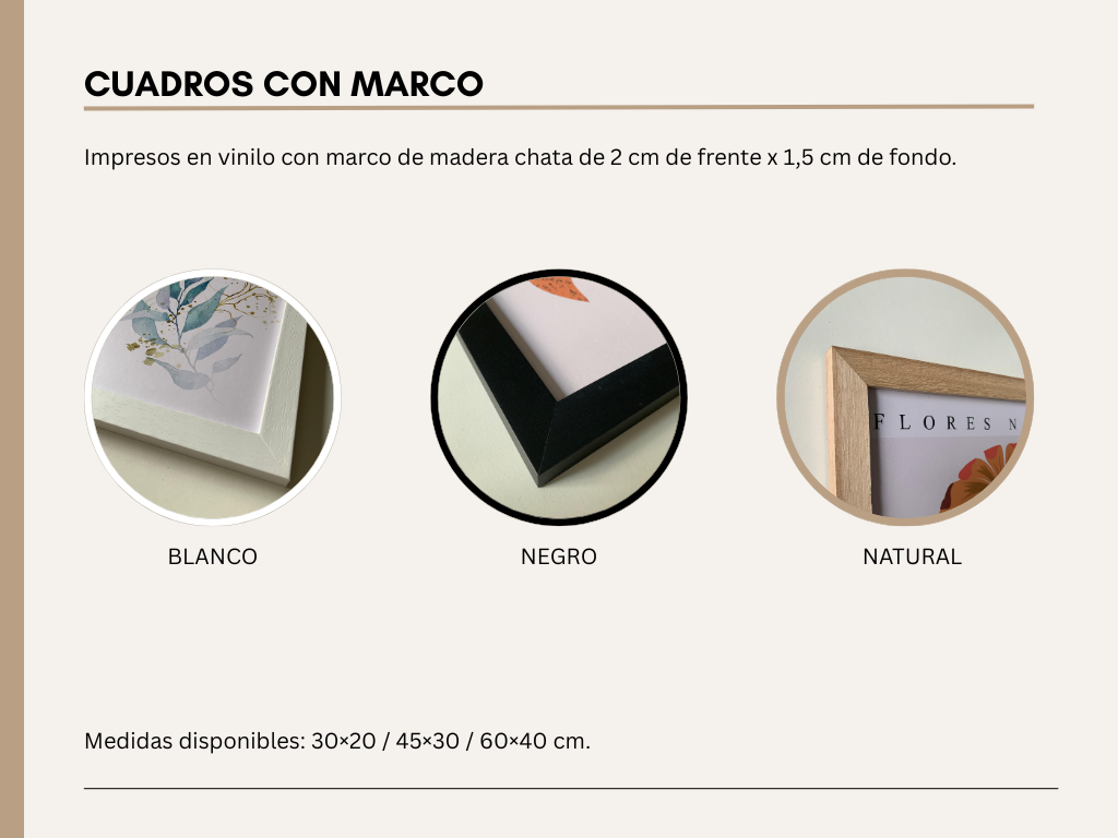 Con Marco: 30×20 / 45×30 / 60×40 cm.