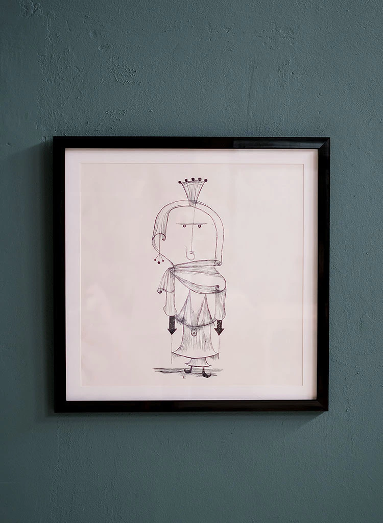 Cuadro con lámina de Paul Klee "The witch with the comb", con paspartú con marco cajón en color negro laqueado. Ideal para usar sobre alguna consola o escritorio, en habitaciones al respaldo de la cama acompañado por otro de la misma serie. Al ser un modelo neutro en blanco y negro se adaptan súper bien a cualquier gama de colores, dándole un look especial a tus ambientes.