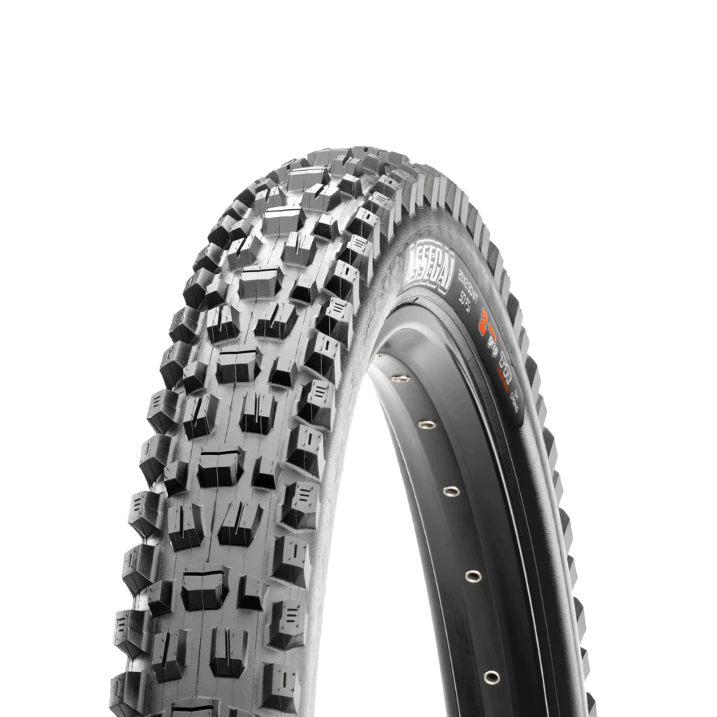Cubierta Maxxis Assegai 29 x 2.5 WT TR 3C DH CasingLa nueva Cubierta MAXXIS ASSEGAI DH 29×2,50 WT TR 3C ha sido diseñada por el campeón Greg Minnaar para ofrecer el máximo rendimiento en los Descensos más radicales. Está optimizada para llantas con canal interno de 30-35 mm. Incluye el compuesto 3C MaxxGrip y la carcasa de Dual-ply con inserciones de butilo en los laterales.Aro: Flexible.Disciplina / Uso: Descenso / Terrenos blandos.Compuesto de gomas: 3C MaxxGripDimensiones ETRTO: 61-584 (29×2.50).Carcasa: Carcasa DH Double Pli 2×60 tpi, con dos capas en los laterales con protección de butyl para dar más solidez.Tecnología Tubeless Ready.Nivel de presión máxima: 60 psi / 4 bar.Peso (fabricante): 1.100 gr