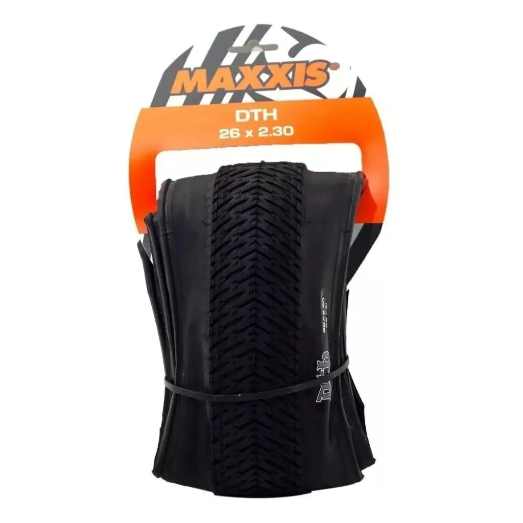 Cubierta Maxxis DTH M147 26x2.3 Negro plegableMarca: MaxxisModelo: dthRodado: 26x2.30cUso: Dirt/ Park/ StreetAro: de Kevlar (plegables/folding)Construcción de bajo pesoTpi: 60 tpiAro de Kevlar, plegablePresión máxima: 30-60psiPeso: 751g