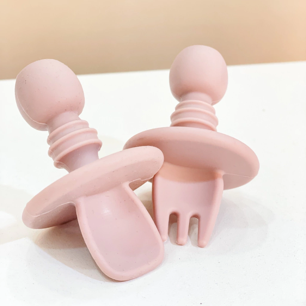 Juego de cubiertosinlcuye 1 tenedor y 1 cucharaideal para las primeras comidas por su tamaño,100% siliconaAtóxicolibre de BPAlibre de ftalatos y látexno personalizable
