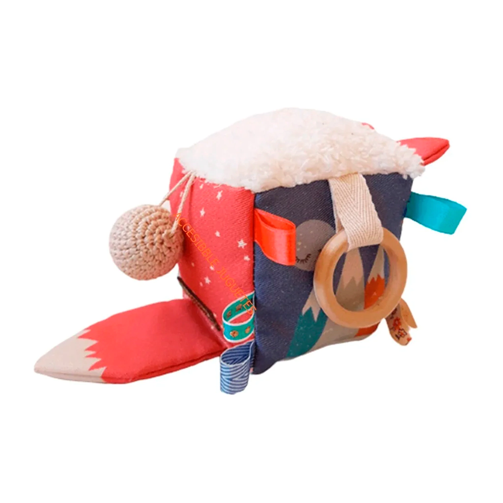** ACCESIBBLE JUGUETES **CUBO DIDACTICO SENSORIAL '' MAPACHE ''Cubo didáctico y sensorial con diversas texturas, colores, sonido y distintos tipos de elementos de agarre y manipulación para que tu bebé comience a explorar. Súper liviano en un tamaño ideal de 12x12cm para que tu bebé pueda manipularlo con facilidad.Juguete libre de plásticos, confeccionado con materiales nobles y amigables con el medio ambiente.CÓMO LAVO EL CUBO SENSORIAL?Se recomienda lavar el producto a mano en un balde con agua fría y jabón neutro, para proteger los accesorios de madera.No se recomienda lavar en lavarropas ya que contiene accesorios de madera que pueden dañar el electrodoméstico y romperse.No usar blanqueadores ni lavandina. No centrifugar, escurrir manualmente y dejar secar al aire libre para asegurarse que se seque el relleno interior. No planchar.- Recomendamos siempre higienizar todos los juguetes que los niños puedan llevarse a la boca -- Confeccionado en gabardina rústica de algodón y poliéster sin procesos químicos, corderito soft, velvet o cordero según diseño. Accesorios de crochet tejidos artesanalmente en hilo de algodón.- El diseño de este producto es exclusivo está confeccionado de forma artesanal en Argentina.
